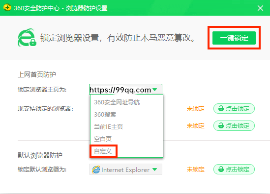 如果你有安装360安全卫士,那么推荐通过360安全卫士的 主页防护 功能来一键锁定所有浏览器主页,具体方法为